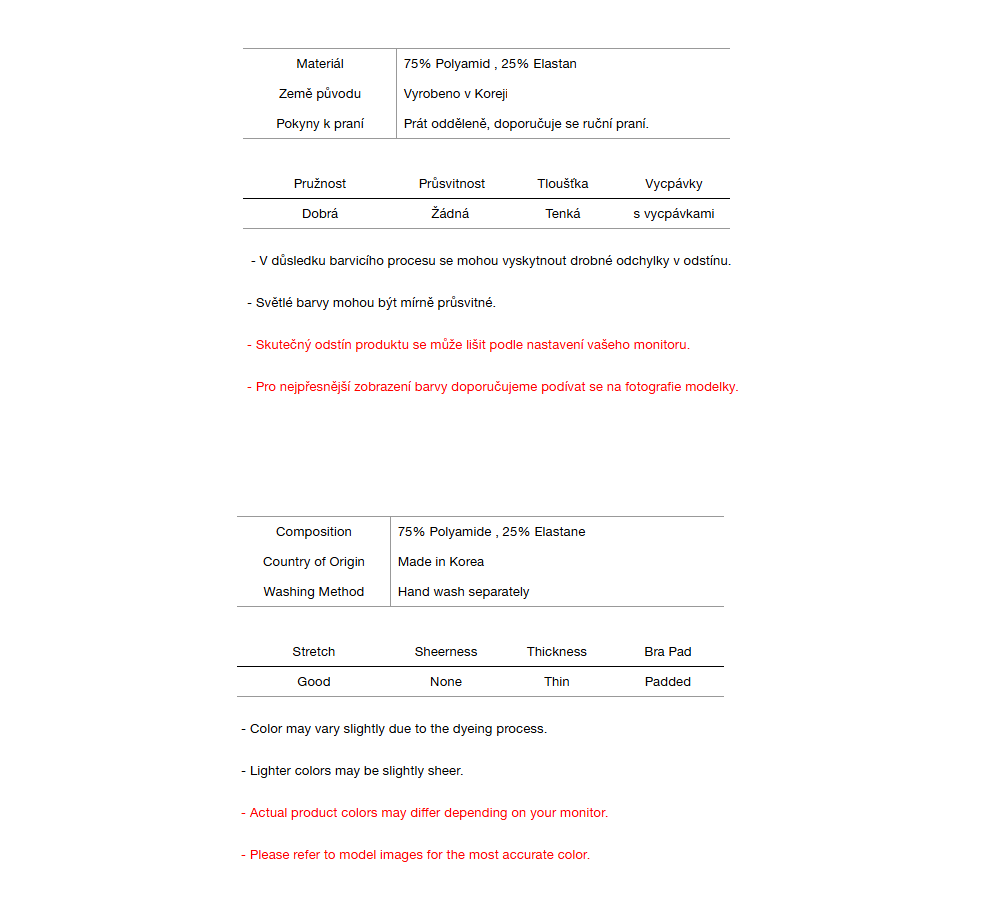 • Tmavé oděvy mohou prosakovat – před nošením perte odděleně.