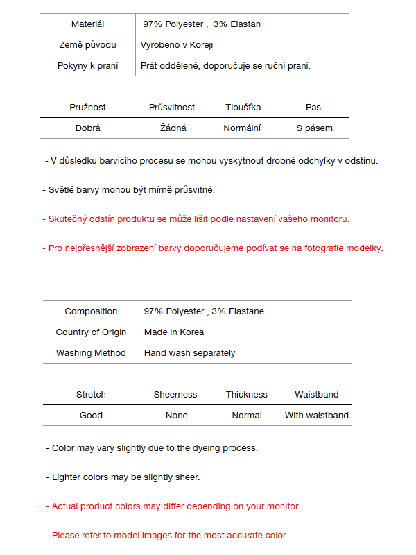 Varování před přenosem barev a pokyny k praní