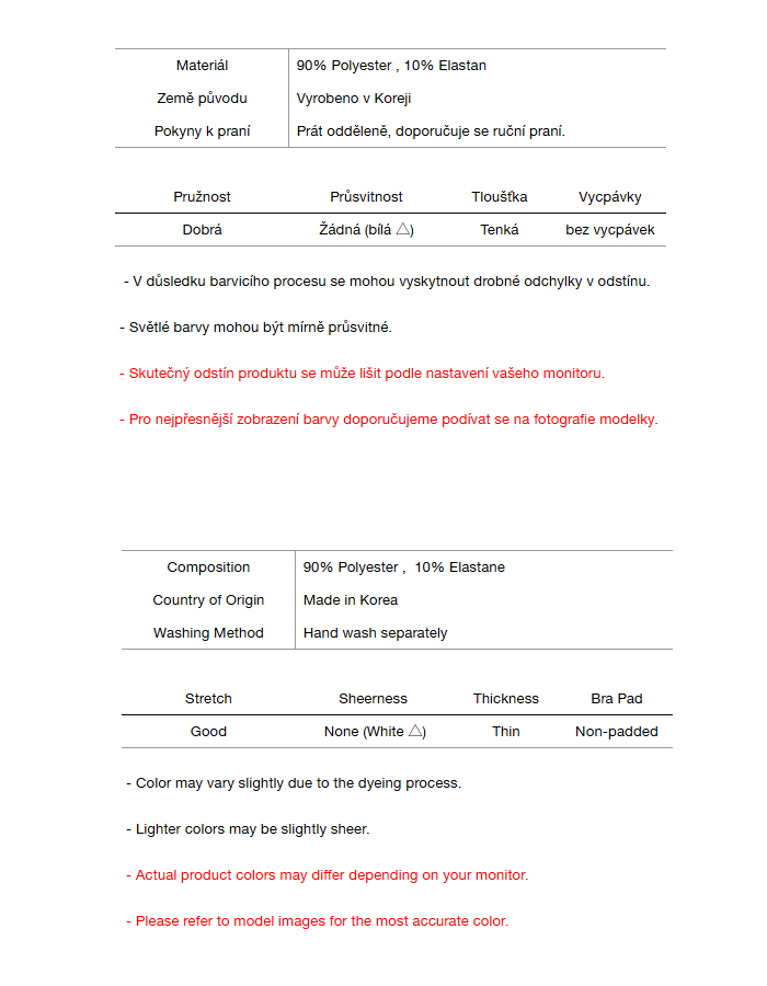 • Tmavé oděvy mohou prosakovat – před nošením perte odděleně.