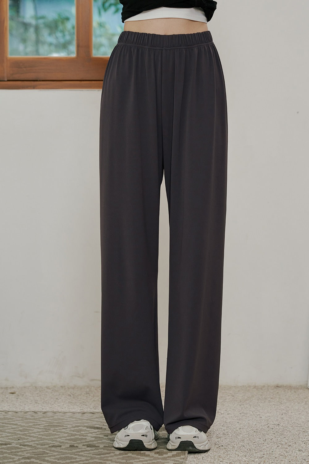 Soft Relaxed-Fit Wide-Leg Pants - Charcoal