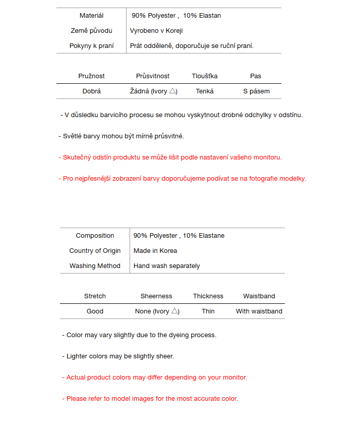 Varování před přenosem barev a pokyny k praní