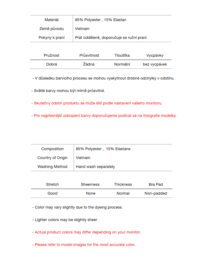 • Tmavé oděvy mohou prosakovat – před nošením perte odděleně.